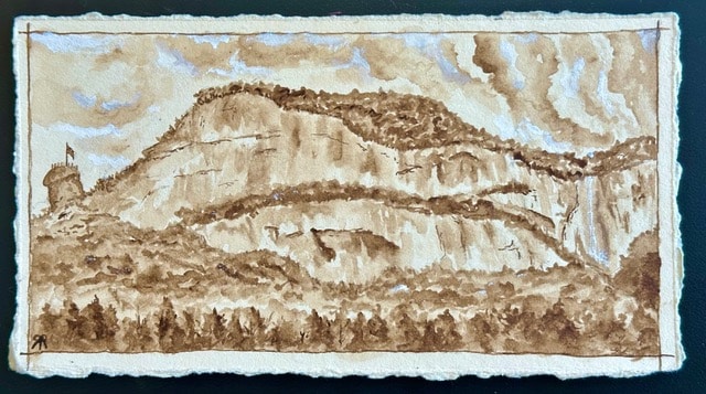 Walnut ink wash on paper, 5 x 7 in.